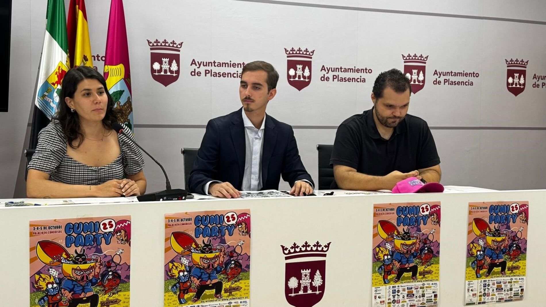 La directora del Instituto de la Juventud de Extremadura (IJEX), Raquel Martín, ha participado este martes en la presentación del evento en Plasencia, junto al presidente de la entidad, Roberto Manchado, y el concejal de Juventud, Alberto Belloso.