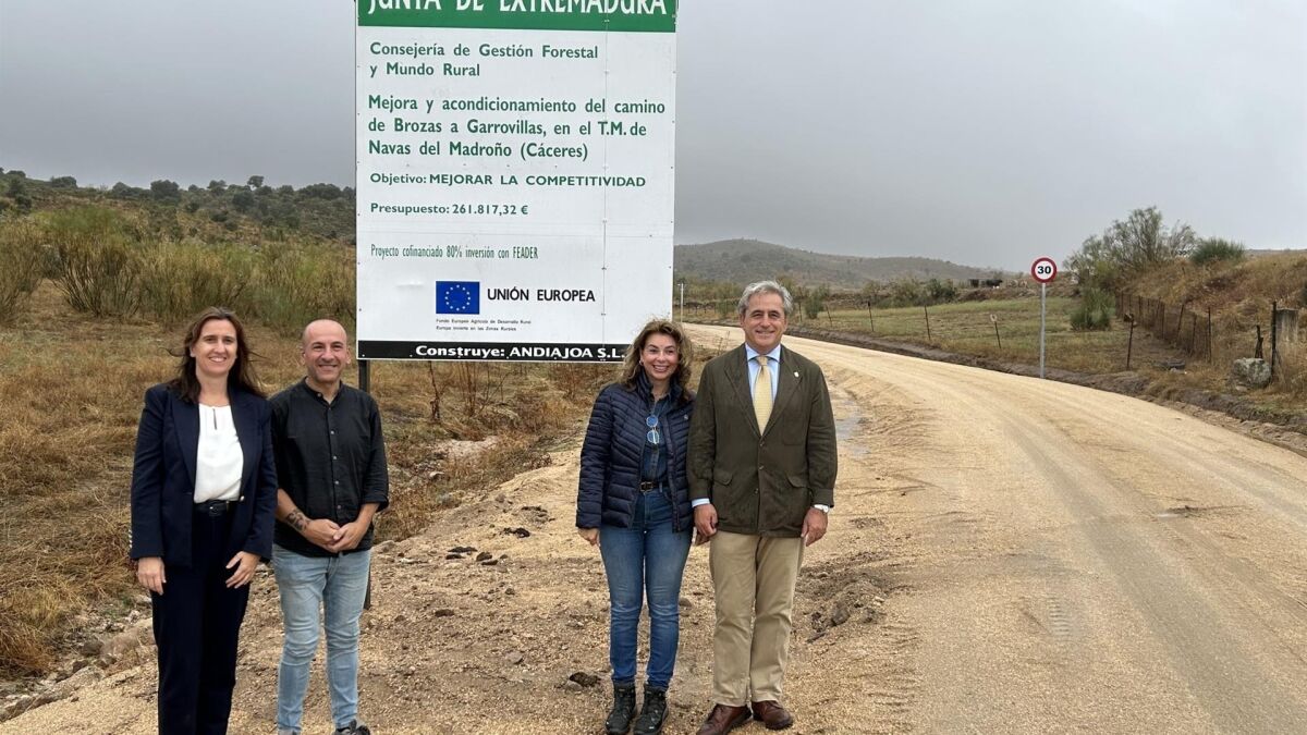El titular de la Consejería, Ignacio Higuero, ha comprobado este lunes in situ el estado del camino, en una visita en la que ha estado acompañado por la directora general de Infraestructuras Rurales, Patrimonio y Tauromaquia, Yohana Balas, y el alcalde de Navas del Madroño, Ricardo Villegas.