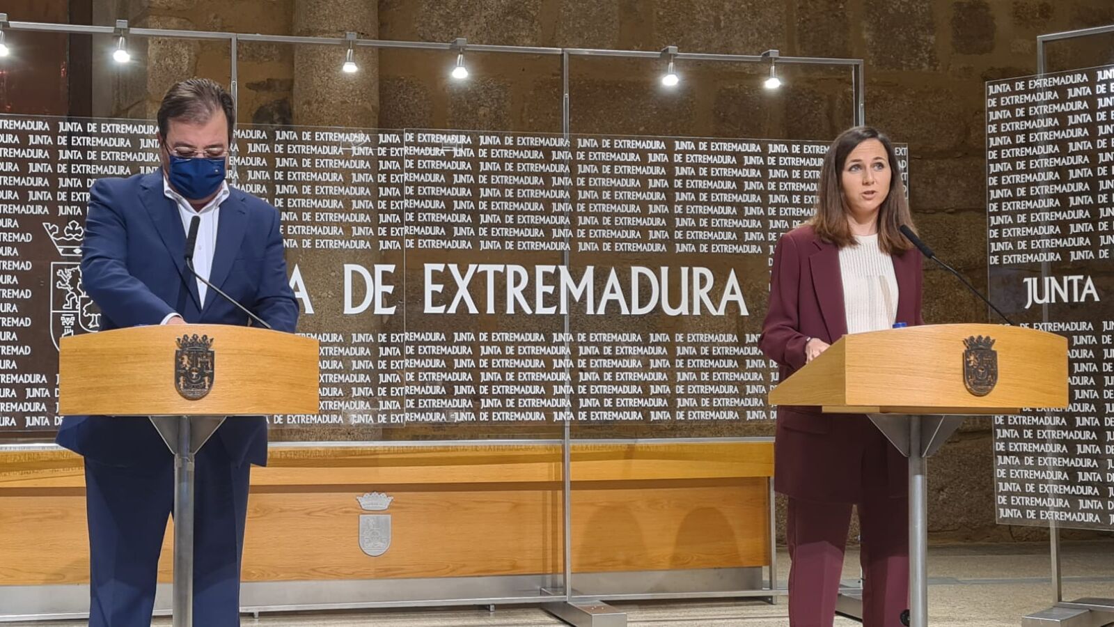 La ministra de Derechos sociales y Agenda 2030, Ione Belarra, y el presidente de la Junta, Guillermo Fernández Vara rubricaban hoy un convenio que estipula la inversión con la que cuenta el eje social, dentro del plan de Recuperación y Resiliencia para Extremadura.