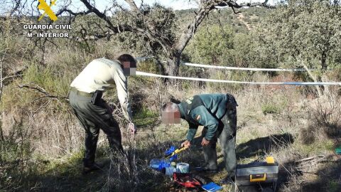 Los agentes de la Patrulla del SEPRONA de la Guardia Civil de Azuaga con la estrecha colaboración que existe con los Agentes del Medio Natural de la Junta de Extremadura, iniciaron la búsqueda y tras un minucioso reconocimiento, localizaron en una finca del término municipal pacense de Azuaga, el cadáver de la rapaz junto a los restos orgánicos de lo que parecía ser un roedor (rata).