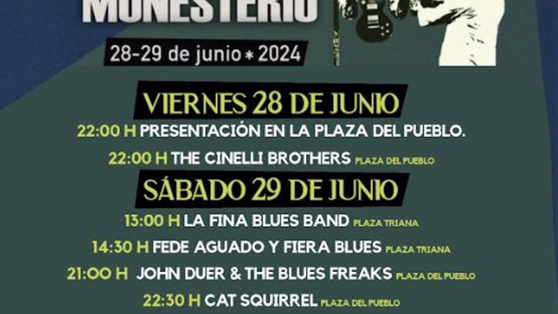 El III Festival Jamón&Blues reunirá el 28 y 29 de junio en la localidad pacense de Monesterio a bandas internacionales, nacionales y extremeñas, como Susan Santos, The Cinelli Brothers, Cat Squirrel, Fede Aguado y Fiera Blues, John Duer & the Blues Freaks y La Fina Blues Band.