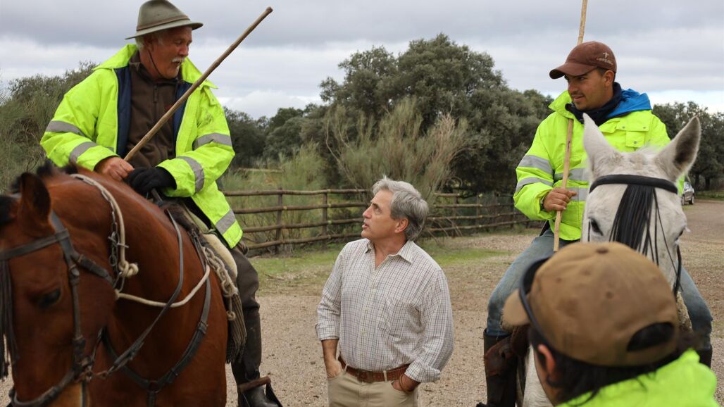 Higuero ha realizado un tramo de la ruta partiendo de las cercanías de Almaraz y finalizando en el descansadero del ganado en las proximidades de Casas de Miravete, compartiendo gran parte de toda la jornada de este lunes junto al ganadero, su familia y los pastores que le acompañan.