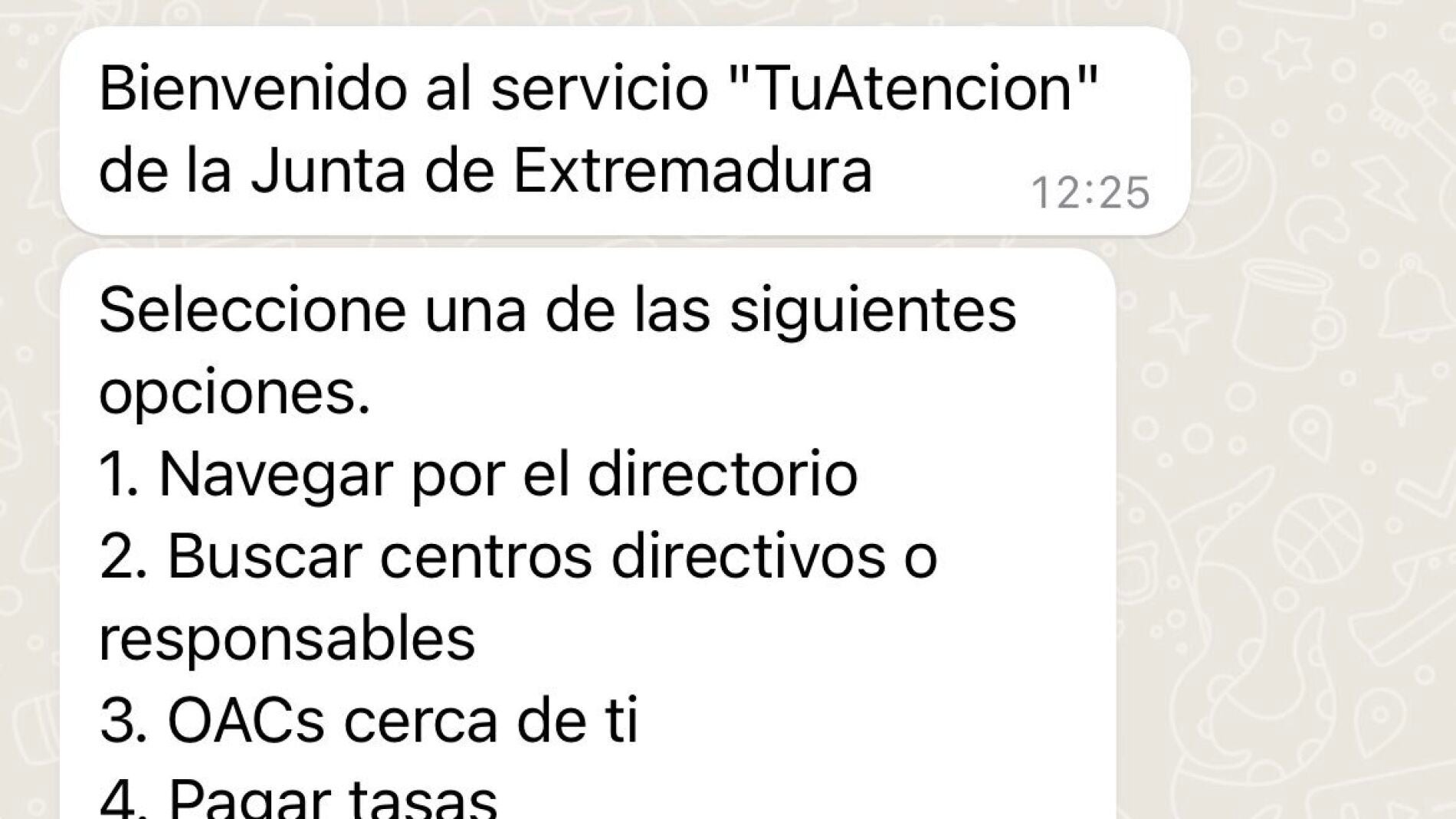 Además, el justificante de pago de la correspondiente tasa se generará a través de la propia red de mensajería, de forma que se elimina la necesidad de presentarlo en formato papel y, por tanto, asegura la Junta de Extremadura, se avanza en la adecuación de los servicios al móvil, la supresión de cargas documentales y la protección del medio ambiente. En caso de duda, el propio asistente virtual ofrece las alternativas de ayuda relacionadas al tipo de servicio al que se quiere acceder.