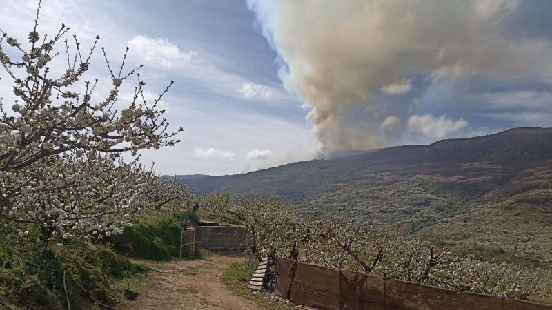Medios aéreos y terrestres participaban ayer en la extinción de un incendio forestal declarado a primera hora de la tarde de este jueves en la zona de Navaconcejo. En concreto, trabajaban en las labores, dos helicópteros del Infoex, cuatro retenes terrestres y dos agentes del medio natural, según fuentes de la Consejería de Agricultura.