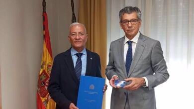 El delegado del Gobierno en Extremadura, Francisco Mendoza, ha recibido este lunes la Memoria de la Fiscalía 2022 de manos del fiscal superior de Extremadura, Javier Montero Juanes.