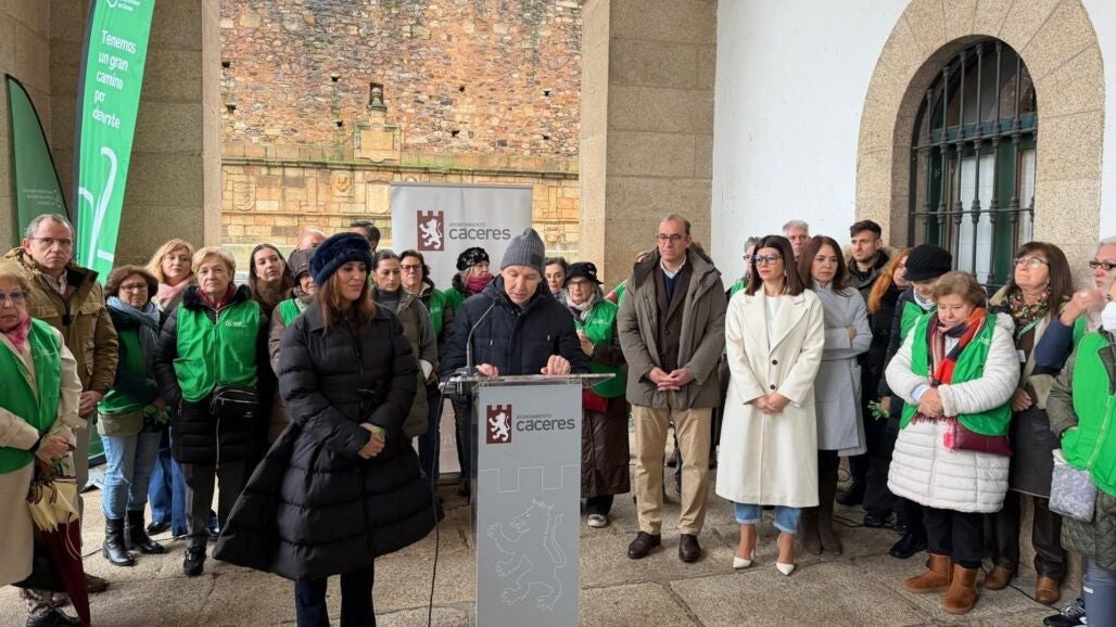 En el acto se han repartido pulseras, y esta noche la fachada del Ayuntamiento de Cáceres se iluminará de verde en señal de apoyo a la lucha contra esta enfermedad.