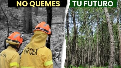 El Plan INFOEX ha puesto en marcha una campaña publicitaria para sensibilizar a los extremeños frente a los incendios forestales con el lema 'Planta cara al fuego, no quemes tu futuro', que comienza hoy lunes, 16 de junio, y tendrá una amplia difusión en televisión, emisoras de radio, prensa escrita, cartelería, internet y redes sociales.