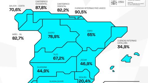 La reserva del Guadiana se sitúa en la última semana al 44,9 por ciento de su capacidad total, mientras que la del Tajo está al 67,2 por ciento, según ha informado el Ministerio para la Transición Ecológica y Reto Demográfico (Miteco).
