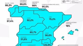 En el conjunto del país, la reserva hídrica ha registrado una nueva subida en la última semana hasta alcanzar el 66,6% (+0,6%) y ganar 321 hectómetros cúbicos (hm3) más pese al descenso de las precipitaciones. Los embalses almacenan actualmente 37.325 hm3 de agua, según ha informado el Ministerio para la Transición Ecológica y el Reto Demográfico (MITECO). Además, las cuencas catalanas han vuelto a crecer hasta alcanzar el 18% (+0,4%).