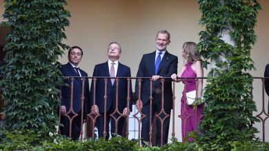 Tras esta cena de bievenida, Su Majestad el Rey presidirá este viernes, 14 de junio, el acto de entrega del XVII Premio Europeo Carlos V, concedido al Mario Draghi, en una ceremonia que tendrá lugar en el Monasterio de Yuste a las 11,00 horas, según explica la Casa Real.