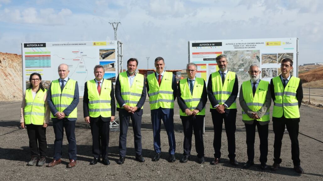 El presidente del Gobierno, Pedro Sánchez, y el ministro de Transportes y Movilidad Sostenible, Óscar Puente, han visitado hoy las obras del primer tramo de la autovía A-58 situado entre Cáceres y Río Ayuela y que constituye la primera fase de la prolongación de esta autovía, que hoy enlaza Trujillo con Cáceres y que en el futuro se extenderá hasta Badajoz. La inversión estimada para esta actuación asciende a 100 millones de euros (IVA incluido).