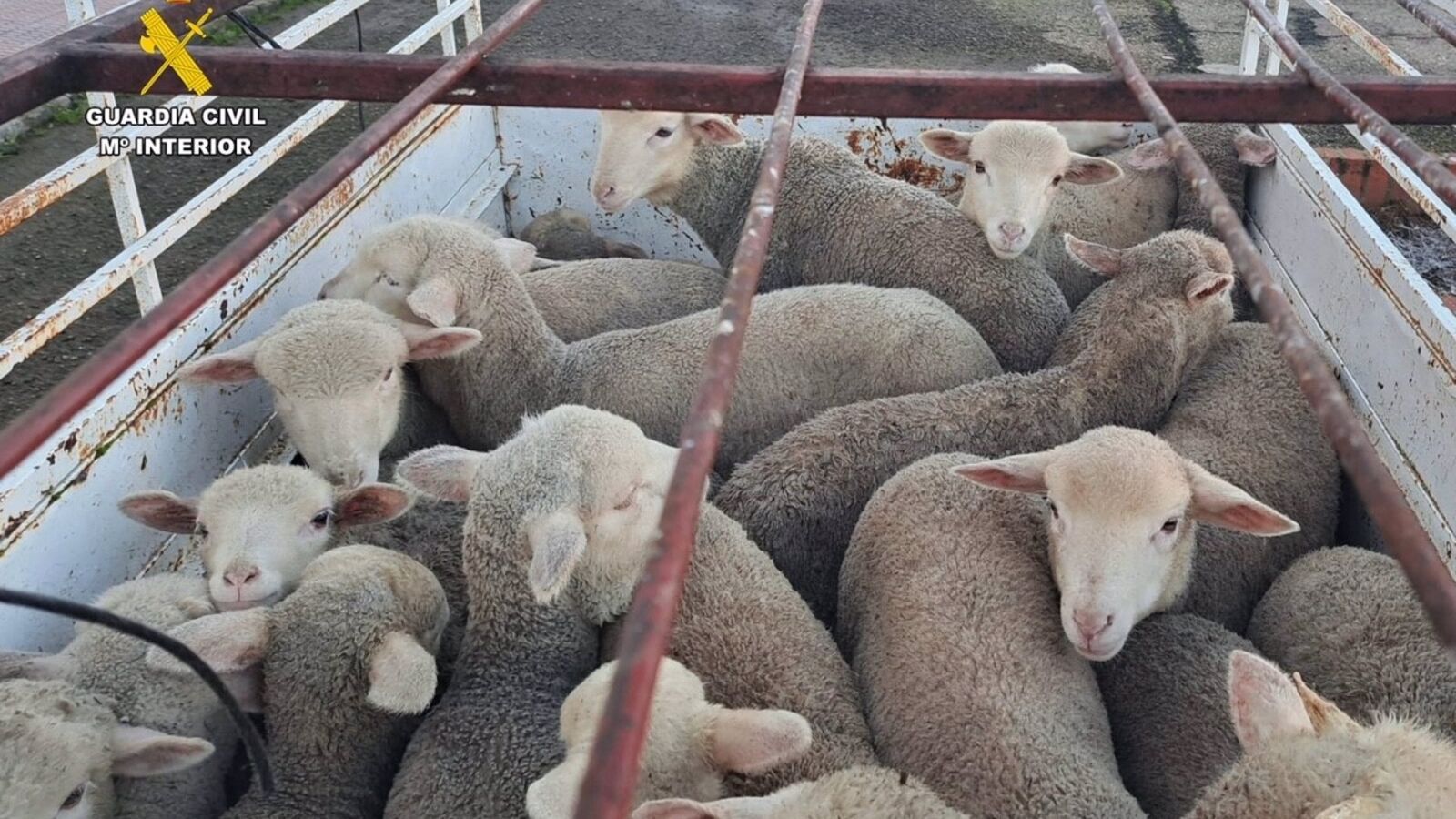 La Guardia Civil ha detenido a tres hombres por el robo de 28 corderos de una finca de Logrosán que transportaban en un remolque en el cual fallecieron dos de los animales debido a la "nefastas" condiciones de espacio en las que eran transportados.