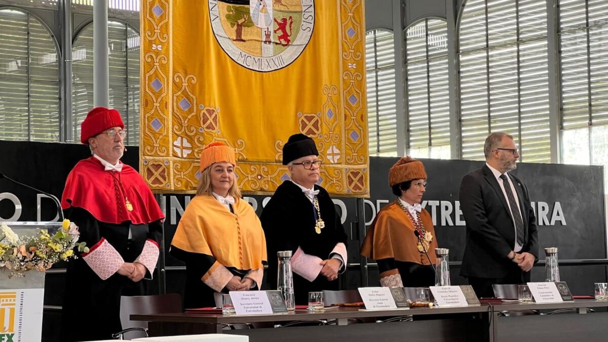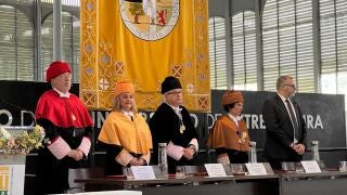 El rector de la UEx, Pedro M. Fernández Salguero, ha presidido el acto y ha destacado que la universidad pública de Extremadura es un "activo" que ha resultado "indispensable" para la cohesión social de la región y un "motor clave para el avance del conocimiento, el progreso económico y la mejora de la calidad de vida".