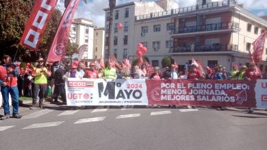 Varios centenares de manifestantes convocados por los sindicatos CCOO y UGT en Extremadura, se manifestaban por las calles de Mérida en este Primero de Mayo, Día Internacional del Trabajador. Lo hacía bajo el lema "Por el pleno empleo: menos jornada, mejores salarios", y este año en sus intervenciones ante los medios de comunicación, las secretarias generales de Comisiones y UGT en la región, Encarna Chacón y Patrocinio Sánchez, respectivamente, han querido reivindicar además de lo referido al lema, subrayando que son avances que ya se dan en países europeos de nuestro entorno, incidiendo también en la importancia de que los empresarios redistribuyan unos beneficios y unas plusvalías que cada año baten registros históricos, las líderes sindicales han querido poner sobre la mesa la necesidad de una "mejor democracia", haciendo un llamamiento a los partidos políticos extremeños para que haya más decencia y estén a la altura de lo que el país necesita, con más diálogo, compromiso y respeto.