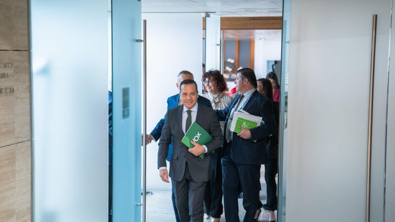 En este punto, ha insistido en la "satisfacción" con las que Vox recibe el discurso de Guardiola, y ha rehusado someterse a preguntas de los medios teniendo en cuenta que este miércoles, en la continuación del debate de investidura, intervendrá el presidente y portavoz parlamentario de su formación, Óscar Fernández Calle, para exponer la postura de su partido con "mayor extensión".