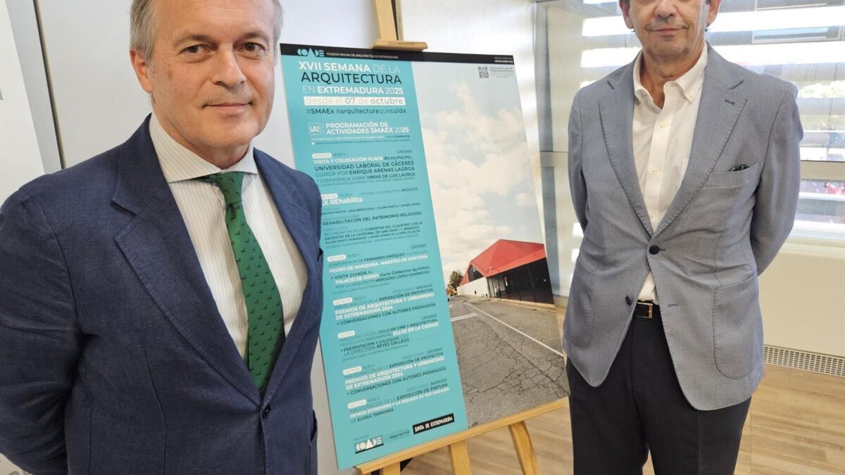 Los actos de la Semana de la Arquitectura en Extremadura se han presentado este miércoles en Mérida por parte del consejero de Infraestructuras, Transporte y Vivienda, Manuel Martín Castizo, y el decano del Colegio de Arquitectos de Extremadura (Coade), Manuel Cabalgante.
