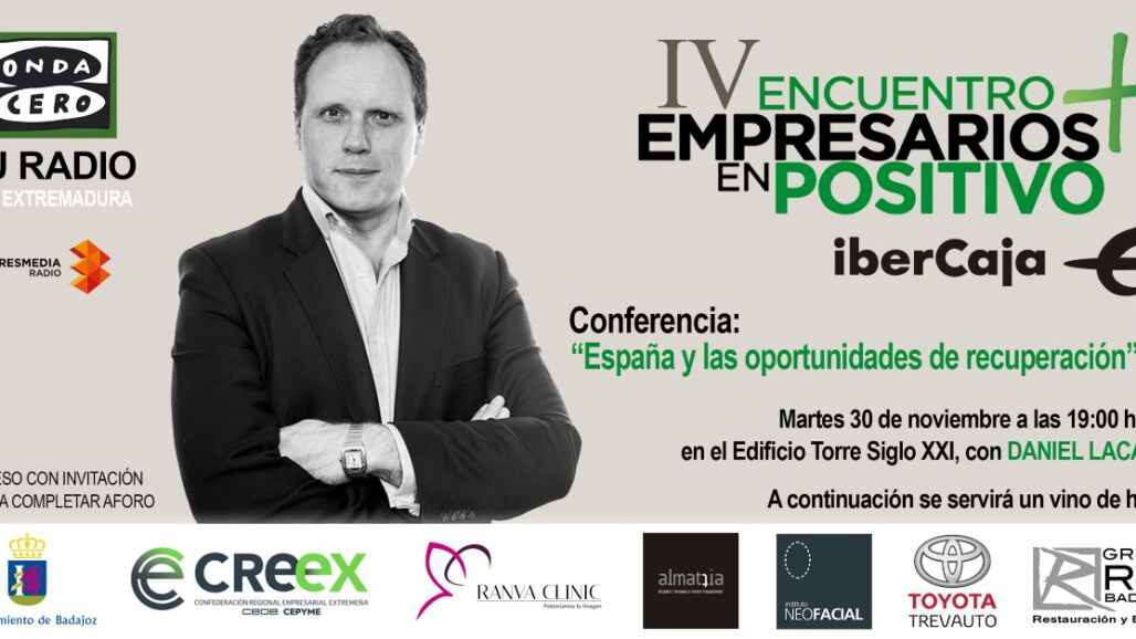 A partir de las siete de esta tarde se celebra el IV Encuentro “Empresarios en Positivo” organizado por Onda Cero Badajoz e Ibercaja. El evento tendrá lugar en el Edificio Badajoz siglo XXI y asistirá el alcalde pacense, Ignacio Gragera, además de otras autoridades de la región y más de 200 personas del mundo empresarial y económico de la ciudad. Contará contará con la ponencia “España y las oportunidades de recuperación” del prestigioso economista Daniel Lacalle, doctor en Economía, profesor de Economía Global y Finanzas, gestor de fondos de inversión, columnista y colaborador en Antena 3, Onda Cero y La Sexta. Lo podrán seguir en streaming a través de la página web de Onda Cero Extremadura. Lacalle nos destacaba el gran valor añadido que tenemos en la agricultura, ganadería y productos de calidad. También incidía en las oportunidades que se abren con las exportaciones, en una economía que no acaba de alcanzar velocidad de crucero. Por otro lado, habrá una mesa empresarial de debate moderada por Ignacio Rodríguez Burgos, Jefe de Economía de Onda Cero. Un evento que cuenta además con el patrocinio del Ayuntamiento de Badajoz, la Confederación Regional Empresarial Extremeña (CREEX), Ranva Clinic, Almatia, Instituto Neofacial y Toyota Trevauto. Desde 2018 Onda Cero, dentro de la campaña “Positivos”, reúne en Badajoz a los empresarios más importantes de Extremadura, a los grandes y a los pequeños, siendo el foro económico, político y social más importante que se celebra en Badajoz.