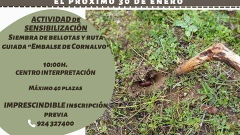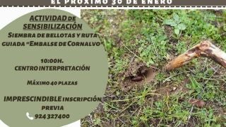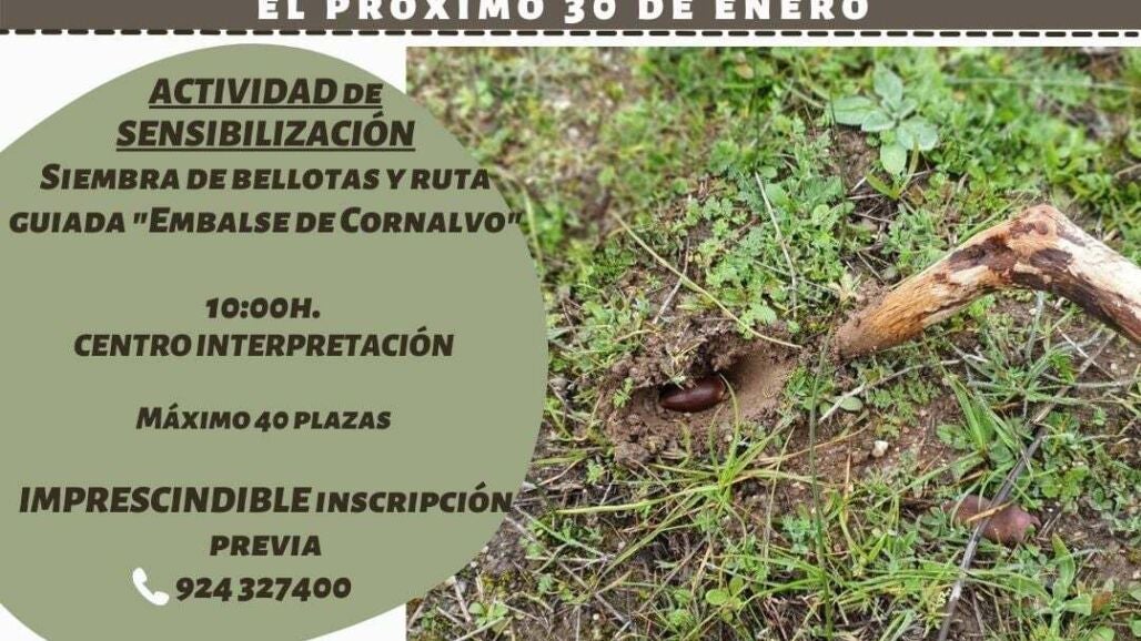 Con motivo del Día Mundial de la Educación Ambiental el próximo 30 de enero se organiza un taller de sensibilización ambiental en el Parque Natural de Cornalvo. Se desarrollará una siembra de bellotas y se realizará una ruta guiada por el Embalse de Cornalvo (se podrá elegir entre la ruta de 4 km o de 7 km). La hora de encuentro es a las 10:00h en Centro de Interpretación. Está dirigida a todos los públicos y la actividad es totalmente gratuita. Las inscripciones se pueden realizar en el 924 327400 y el máximo será 40 personas.
