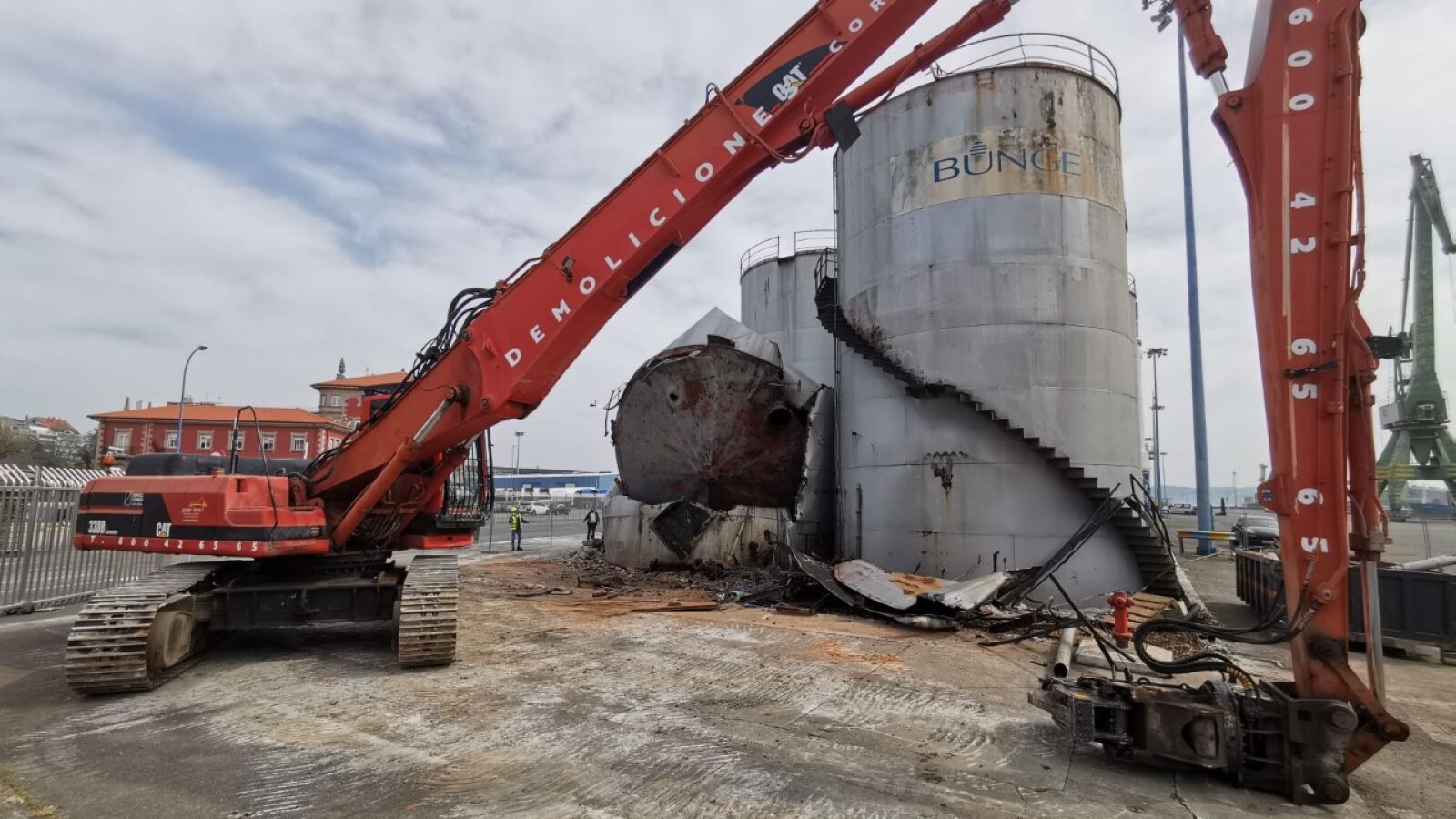 Bunge Ibérica ya procede a hacerse cargo de los trabajos de demolición de las antiguas estructuras para liberar suelo portuario. Es un primer paso para el desmantelamiento de más instalaciones industriales a lo largo del año y abrir espacio a los ciudadanos de puertas adentro del muelle.