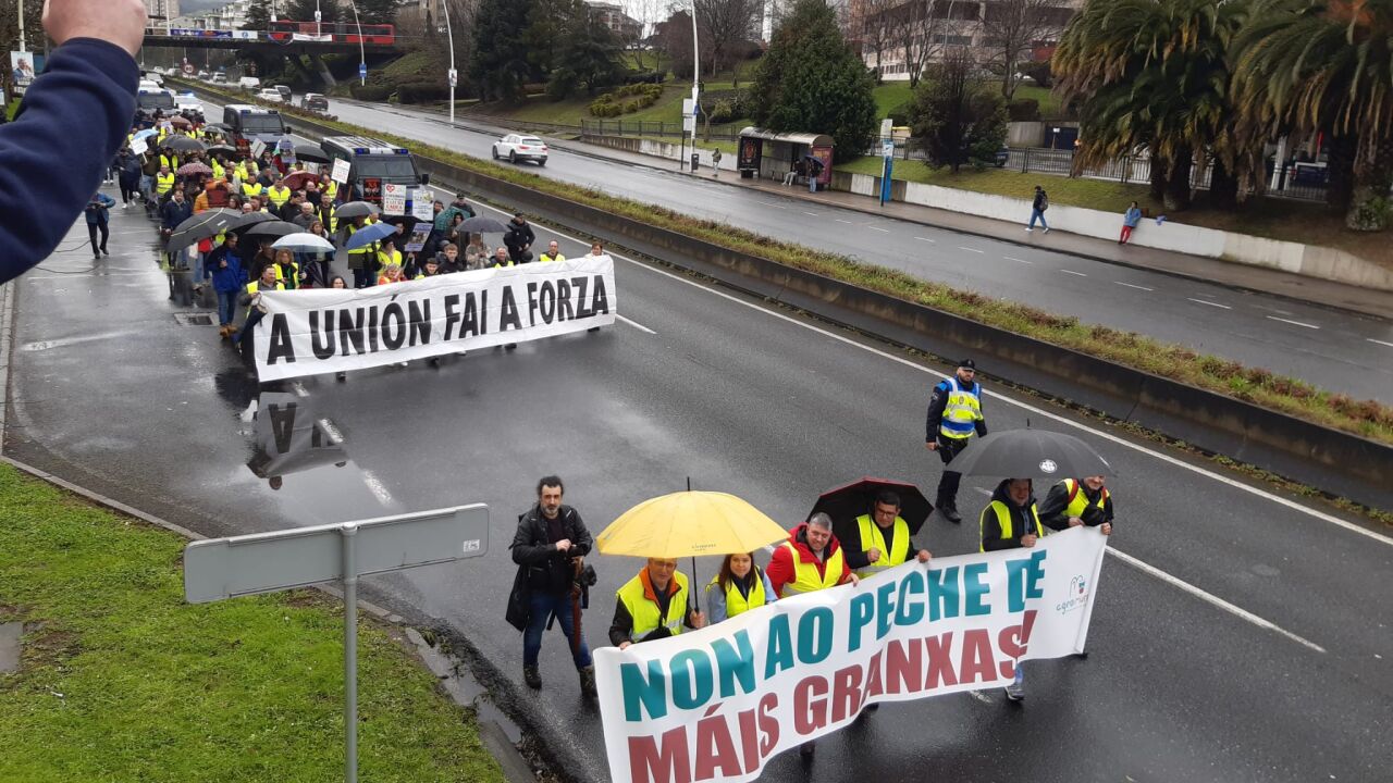 Aunque hubo mucha Policía Nacional y Local controlando, la marcha fue pacífica en todo momento y solo a pie, dado que la Subdelegación del Gobierno impidió la circulación por el recorrido de varios tractores llegados desde las comarcas de Bergantiños y Ordes, que quedaron aparcados en el parking del Coliseum.