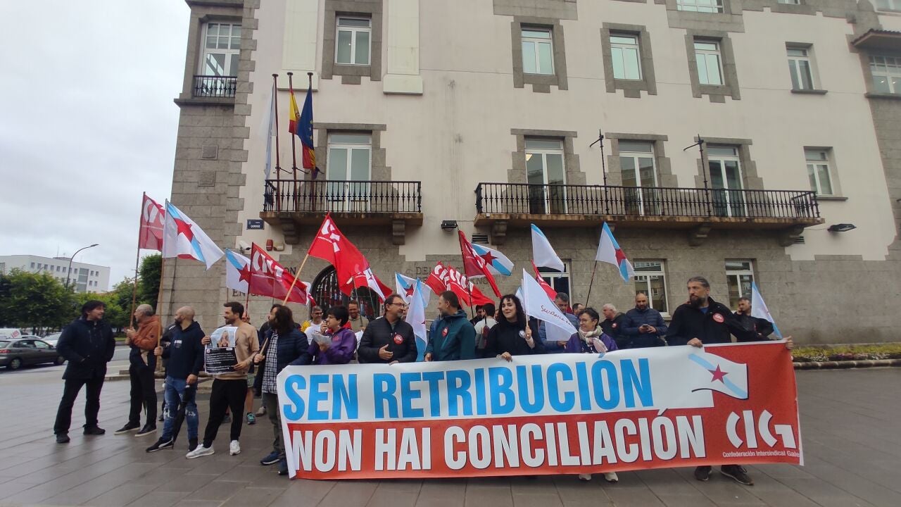 “Queremos conciliar y no renunciar”, es la consigna que coreaba este miércoles la CIG frente a la Delegación de Gobierno. Se han concentrado en las siete ciudades gallegas para denunciar que el Real Decreto 2/2024, que se convalida el jueves en el Congreso de los Diputados, no recoge que el permiso parental de ocho días sea retribuido.