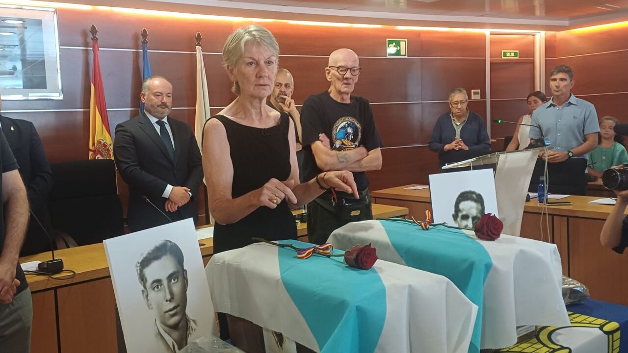 En un salón de plenos abarrotado tuvo lugar un acto de homenaje muy emotivo, muy protocolizado, con discursos de los alcaldes de Mesía, Mariano Iglesias, y Culleredo, José Ramón Riobóo, del presidente de la Asociación para la Recuperación de la Memoria Histórica, Emilio Silva, también habló el cura de Visantoña, Gumersindo Campaña.