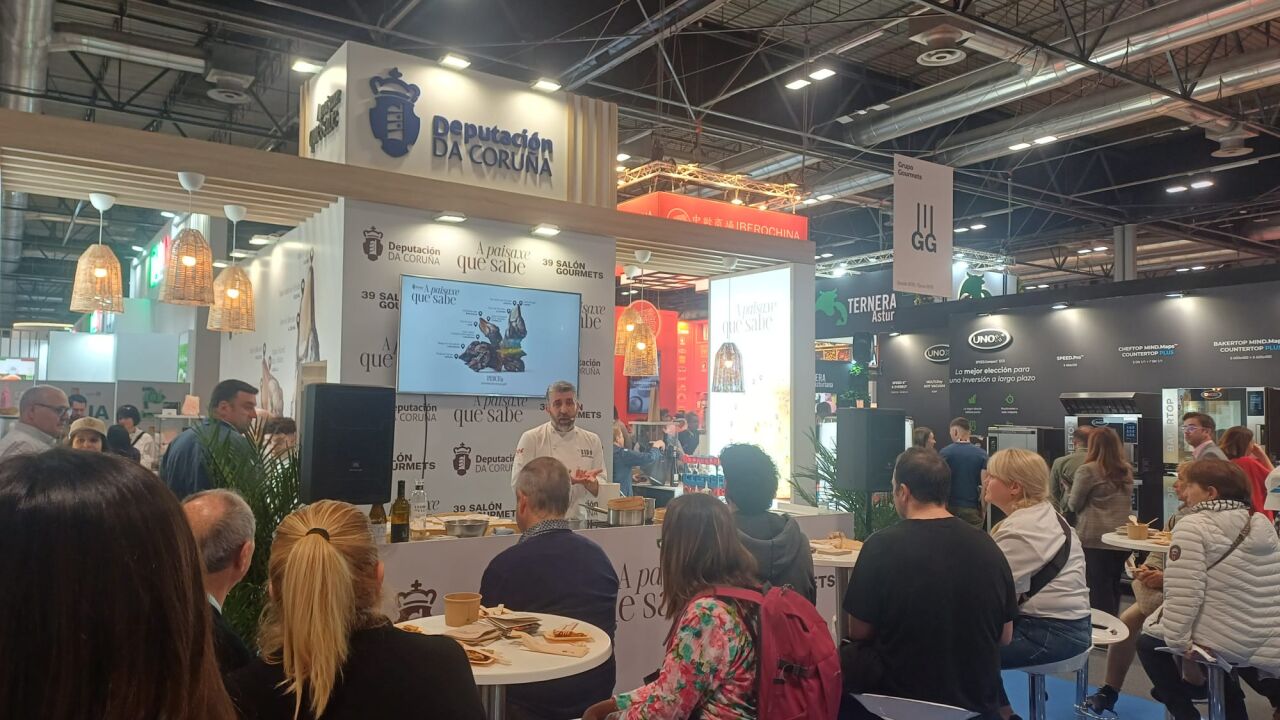 Cociña en vivo de Juan Manuel Crujeiras no Salón Gourmets 2026 coa paisaxe que sabe da Deputación da Coruña