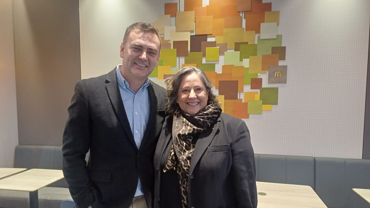 David Villalta Martínez, director de Expansión, y Katy López, franquiciada de McDonald’s en Arteixo
