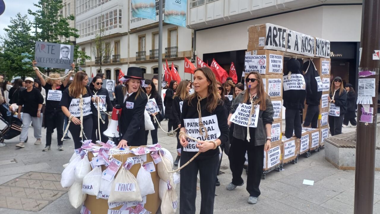 La protesta en A Coruña contra la patronal del sector textil agrupada en ARTE, Asociación de Retail Textil de España, ha partido de la Calle Compostela y ha centrado sus protestas principalmente contra tiendas del grupo Inditex, dado que el vicepresidente de ARTE, Pablo Francésh Huidobro, también es director corporativo de relaciones laborales de Inditex. La marcha ha acabado un día más delante de la sede de la Confederación de Empresarios, frente a los Nuevos Ministerios en Monelos.