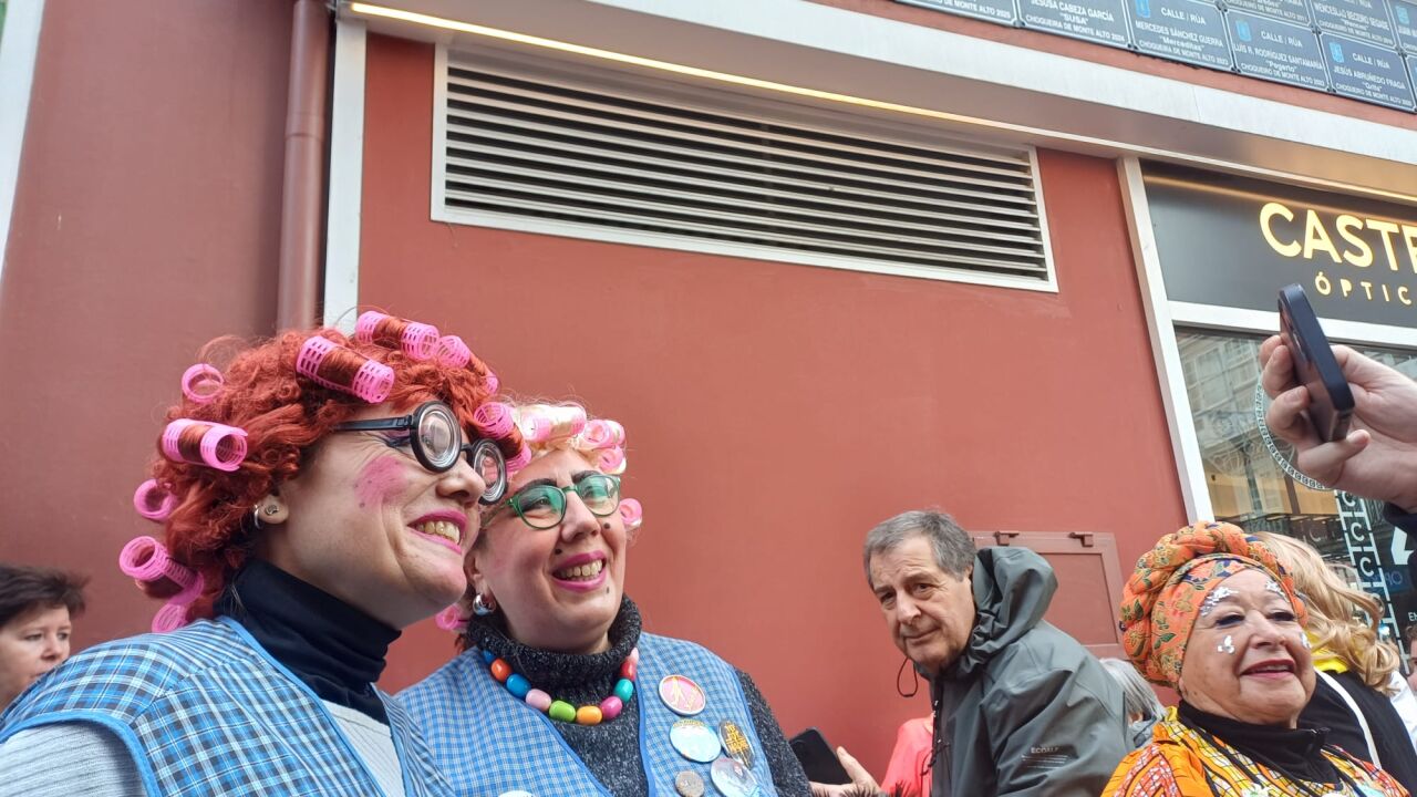 Bego e Isa, despois da colocación da placa que as lembra como choqueiras do entroido 2026 da Coruña
