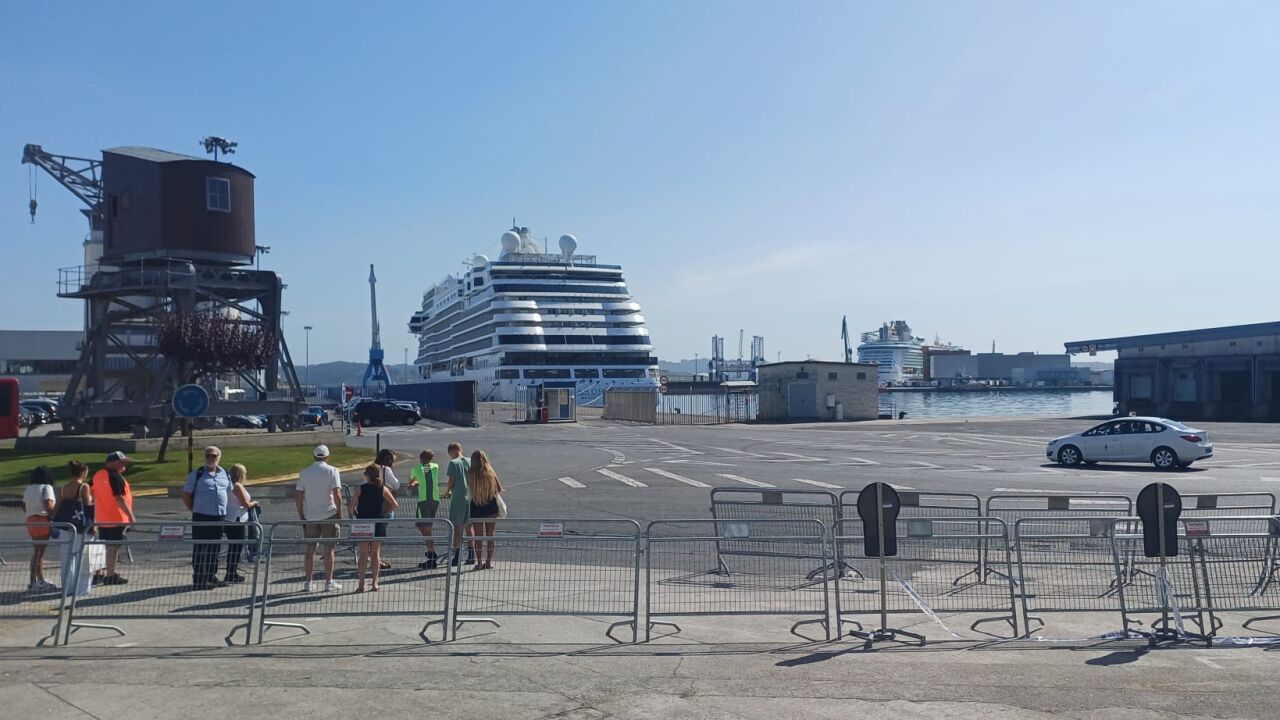 Nos acercamos a la puerta principal de entrada al Puerto de A Coruña, junto a la Plaza de Ourense. Allí entran y salen los 12.000 cruceristas, o buena parte de ellos, con un continuo movimiento de autobuses e incluso taxis que los desplazan, traen o llevan, hasta los diferentes barcos cruceros en los que han llegado a A Coruña.