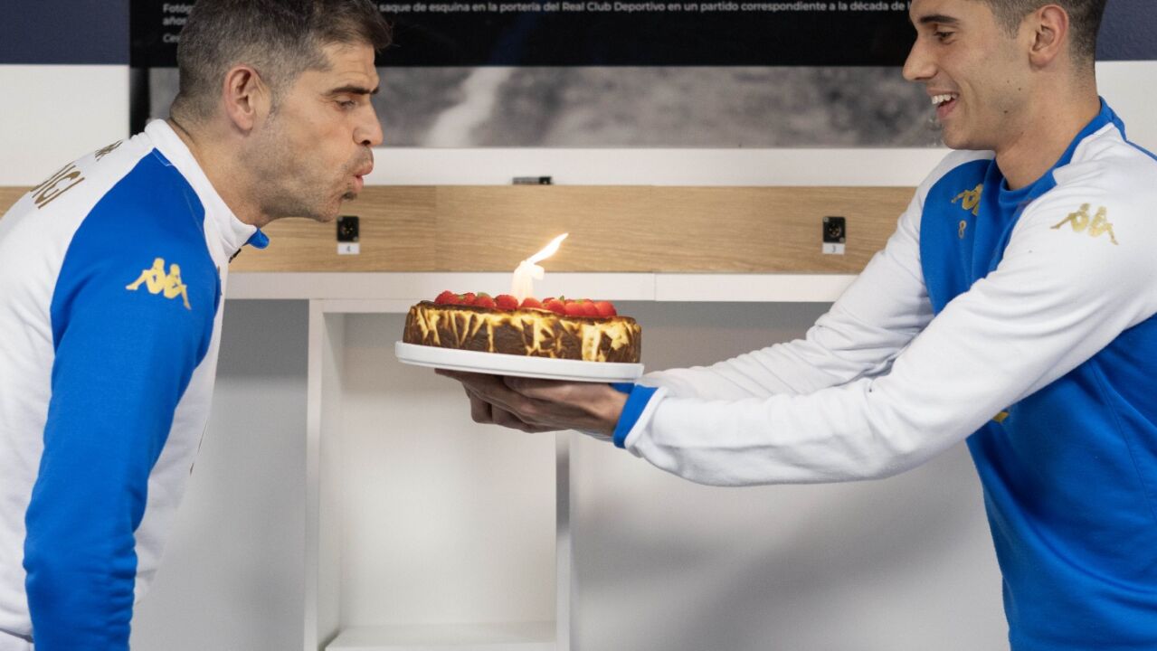Celebración del cumpleaños de Hidalgo en el vestuartio del Deportivo de La Coruña