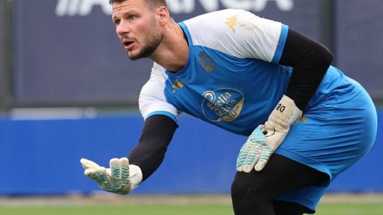Daniel Bachmann, en un entrenamiento con el Deportivo de La Coruña