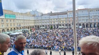Después de una noche larga, tras el partido en Riazor y los pasos por Cuatro Caminos y la Torre de Hércules, con el bengaleo organizado por los Riazor Blues, llegó la recepción al Deportivo en María Pita.