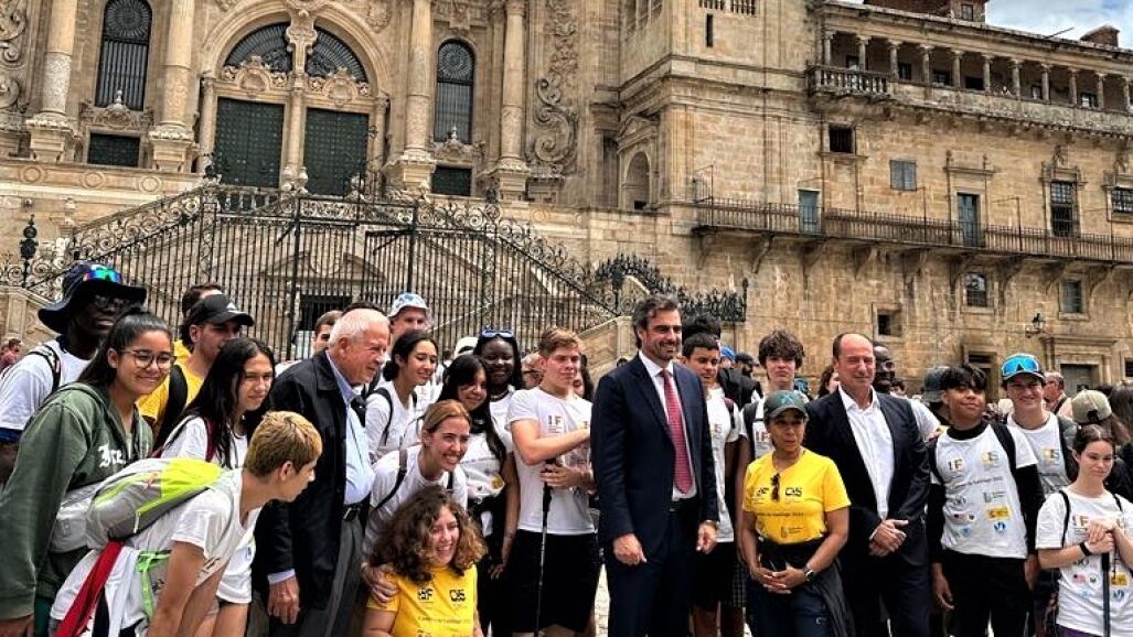O vicepresidente primeiro, Diego Calvo, e o director da Axencia de Turismo de Galicia, Xosé Manuel Merelles, recibiron na praza do Obradoiro a un grupo de mozos e mozas participantes no programa “Camiño de Santiago” da fundación International Studies Foundation encabezados pola embaixadora de Estados Unidos en España, Julissa Reynoso.