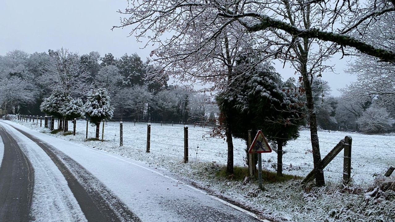La nieve continúa cubriendo buena parte de los concellos de la montaña de Lugo y Ourense, ocasionando problemas de tráfico en algunas carreteras.