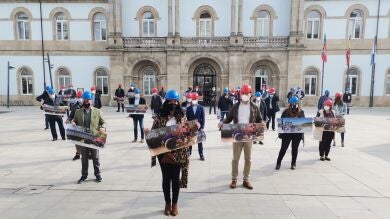 32 alcaldes de la provincia se concentraron ante la sede dela Diputación Provincial para pedir la dimisión del actual encargado de vías y obras, José Tomé, que también es el presidente del órgano provincial.