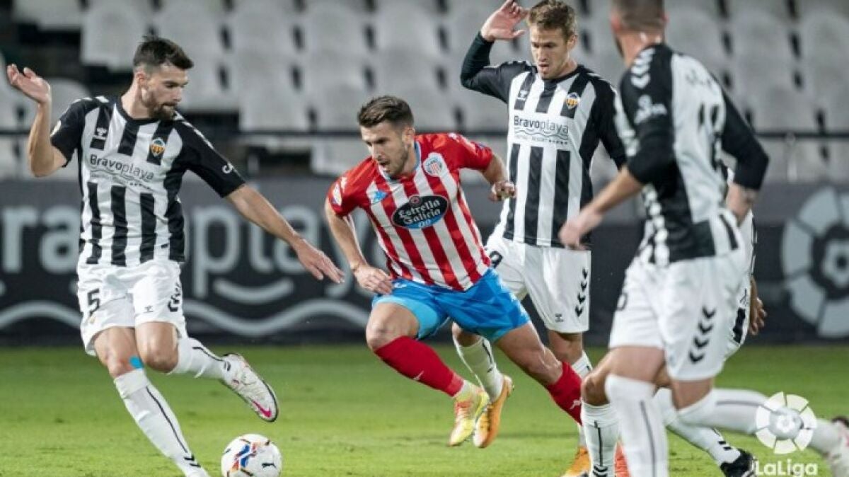 Fue superior al Castellón durante todo el encuentro pero otra vez le costó al Lugo encontrar portería y se tuvo que conformar con un empate que mantiene su condición de invicto en casa pero que no disipa las dudas. El equipo de Luis César Sampedro salió al campo con la intención de seguir modelando su estilo de juego. Privó al rival del balón y atacó por los costados aprovechando el buen estado de forma de Arvin Appiah, que volvió a brillar con luz propia durante la primera mitad, y la velocidad del Puma Rodríguez. La más clara de los primeros 45 minutos la tuvo en su cabeza El Hacen, que remató dentro del área y su disparo lo rechazó el guardameta ‘orellut’. Juanpe y Xavi Torres comandaron el centro del campo en otra buena primera mitad del Lugo, que como ya habíamos visto ante el Girona, llevó el control del juego y tuvo las ocasiones más claras del choque.