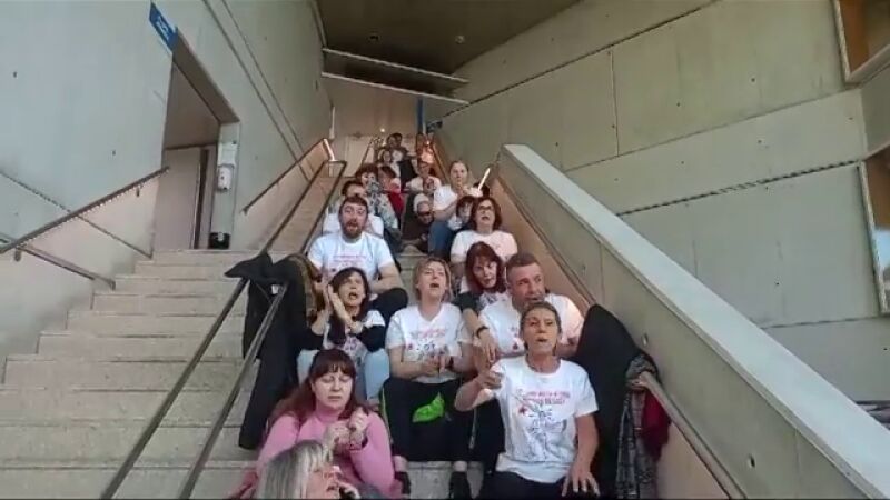 Encierro de las trabajadoras de la limpieza en la Xunta para reclamar la intervención de la administración