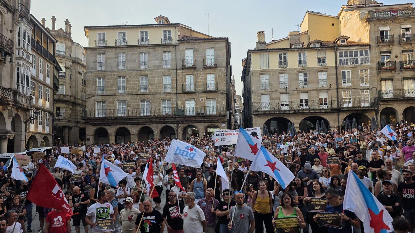 Centos de ourensáns concentráronse na Praza Maior de Ourense para reivindicar outra política forestal e para protestar contra a xestión da Xunta de Galicia na actual vaga de lumes.