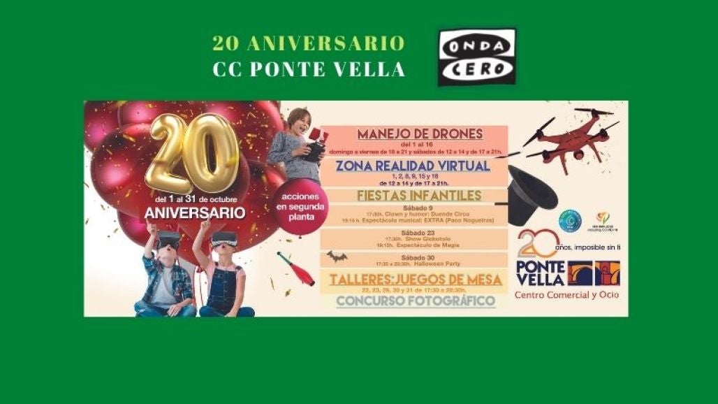 Ponte Vella desplegará durante todo el mes de octubre un amplio programa de actividades de ocio para todos por el 20 aniversario de su apertura, que se cumplirá el próximo 5 de octubre.