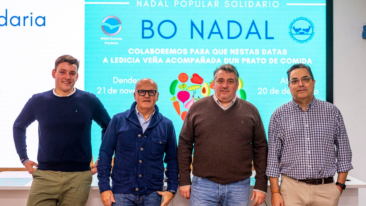 As Novas Xeracións do Partido Popular de Ourense arrancan a iniciativa “Nadal Popular Solidario”, unha campaña solidaria de recollida de alimentos para este Nadal realizada en colaboración co Banco de Alimentos. O presidente provincial do PP de Ourense, Manuel Baltar; o presidente provincial das NNXX do PP de Ourense, Nacho Campo; e o presidente e vicepresidente de Banco de Alimentos de Ourense, Cecilio Santalices e Juan Carlos Provecho; reuníronse esta mañá na sede provincial do Partido Popular de Ourense para lanzar esta iniciativa, que se desenrolará ata o día 20 de decembro.