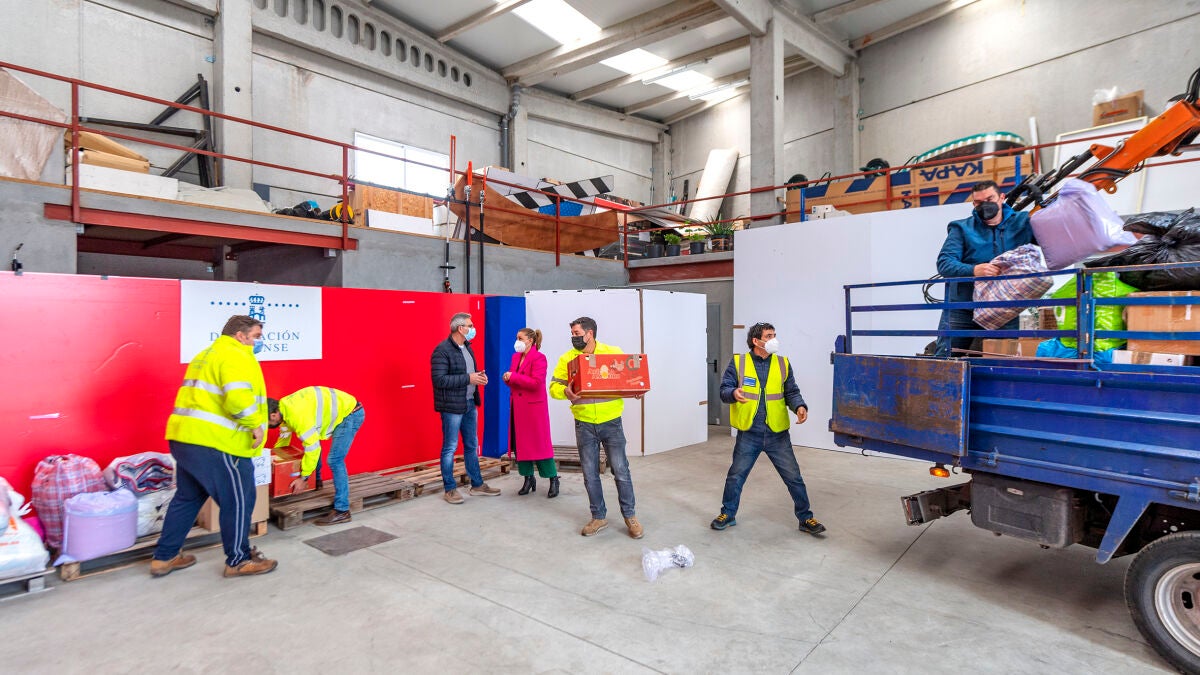 O centro loxístico habilitado pola Deputación no parque de maquinaria, situado no polígono de San Cibrao, comezou a recibir o material humanitario recolectado polo Concello de Ourense nos locais abertos a tal efecto na cidade. Nos vindeiros días seguirá recolléndose este cargamento, ademais de almacenar a axuda que enviarán dende os diferentes municipios da provincia.