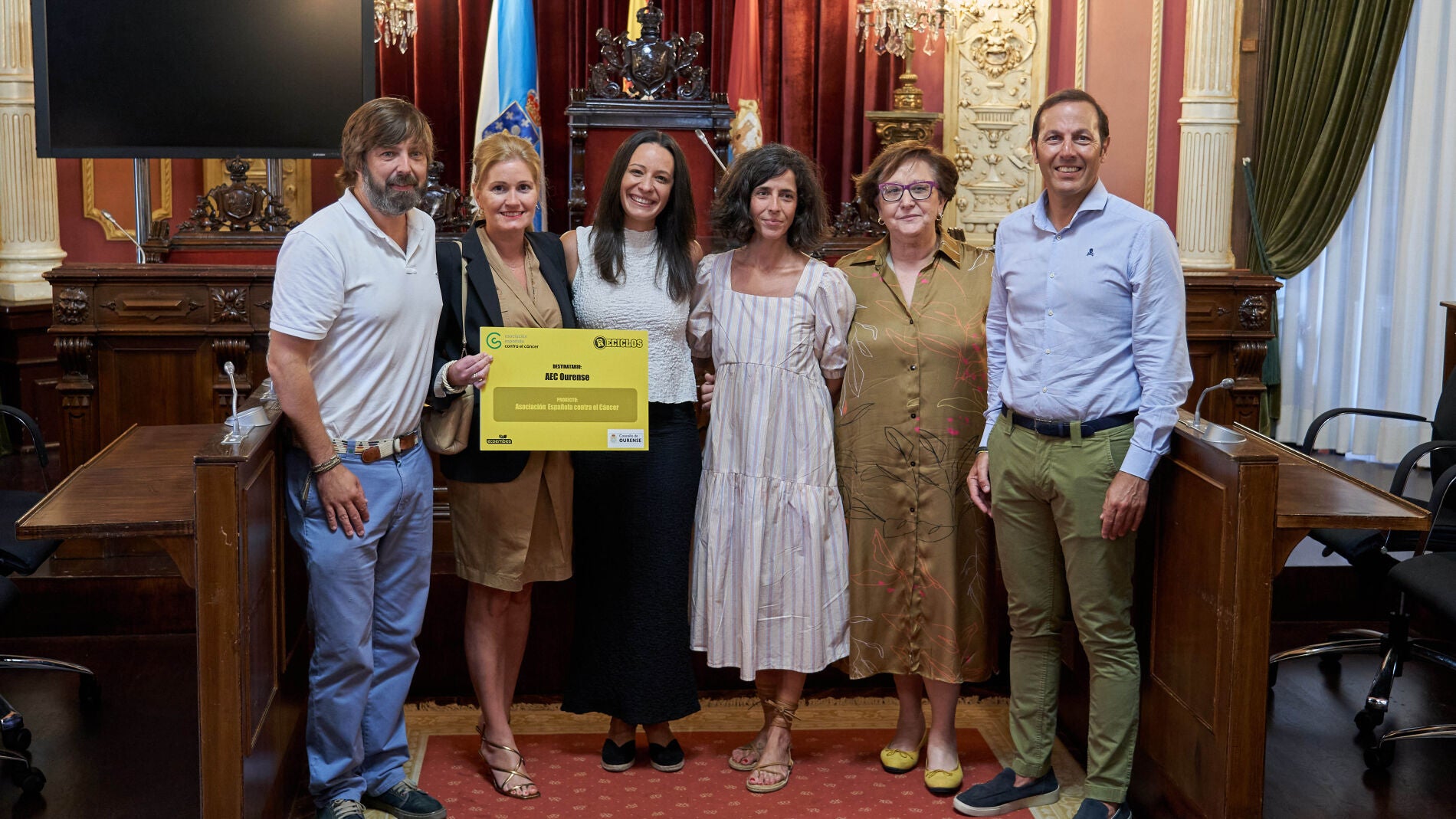 Así, nun acto que tivo lugar esta mañá no salón de plenos, representantes da ONG recibiron, da man de Ana Fernández e de Bruno de Llano, especialista de Ecoembes en Galicia, un cheque simbólico pola doazón realizada polos ourensáns e ourensás que utilizan este sistema. Grazas a estes 2.000 euros, a asociación poderá ofrecer apoio económico ás familias con algún membro que padeza unha enfermidade oncolóxica e que afronten dificultades socioeconómicas, para minimizar o risco de exclusión social e garantir a adherencia ao tratamento.
