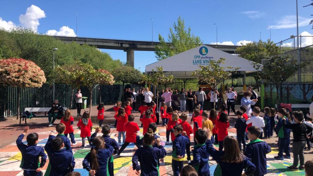 Este xoves 28 de abril entre as 11 e as 12 o alumnado do centro distribuido polas diferentes zonas do patio, realizou un flashmob deportivo.