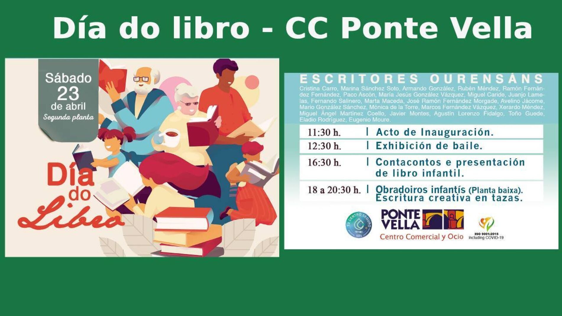 O Centro Comercial Ponte Vella súmase o sábado á actividade cultural conmemorativa do Día do Libro cun programa de actividades no que participarán 24 escritores ourensáns e que inclúe actividades para os máis pequenos.