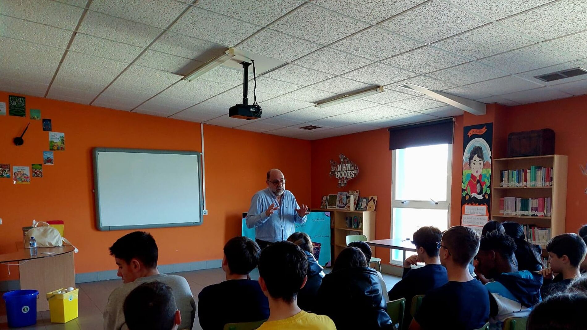 O autor zaragozano Fernando Lalana, premio nacional de literatura infantil e xuvenil, visitou o Colexio Luis Vives de Ourense onde mantivo un encontro moi destendido e ameno co alumnado de educación secundaria conversando sobre a súa vida, vocación e obras literarias.