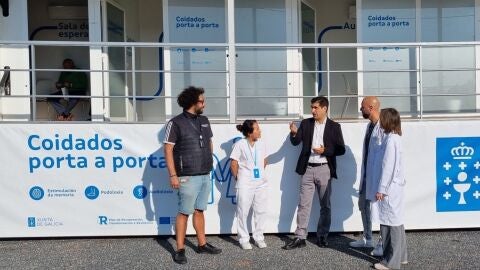 O delegado territorial da Xunta en Ourense, Gabriel Alén, visitou a unidade móbil do programa ‘Coidados porta a porta’ da Consellería de Política Social e Xuventude que estará emprazada ata mañá no concello de Melón.