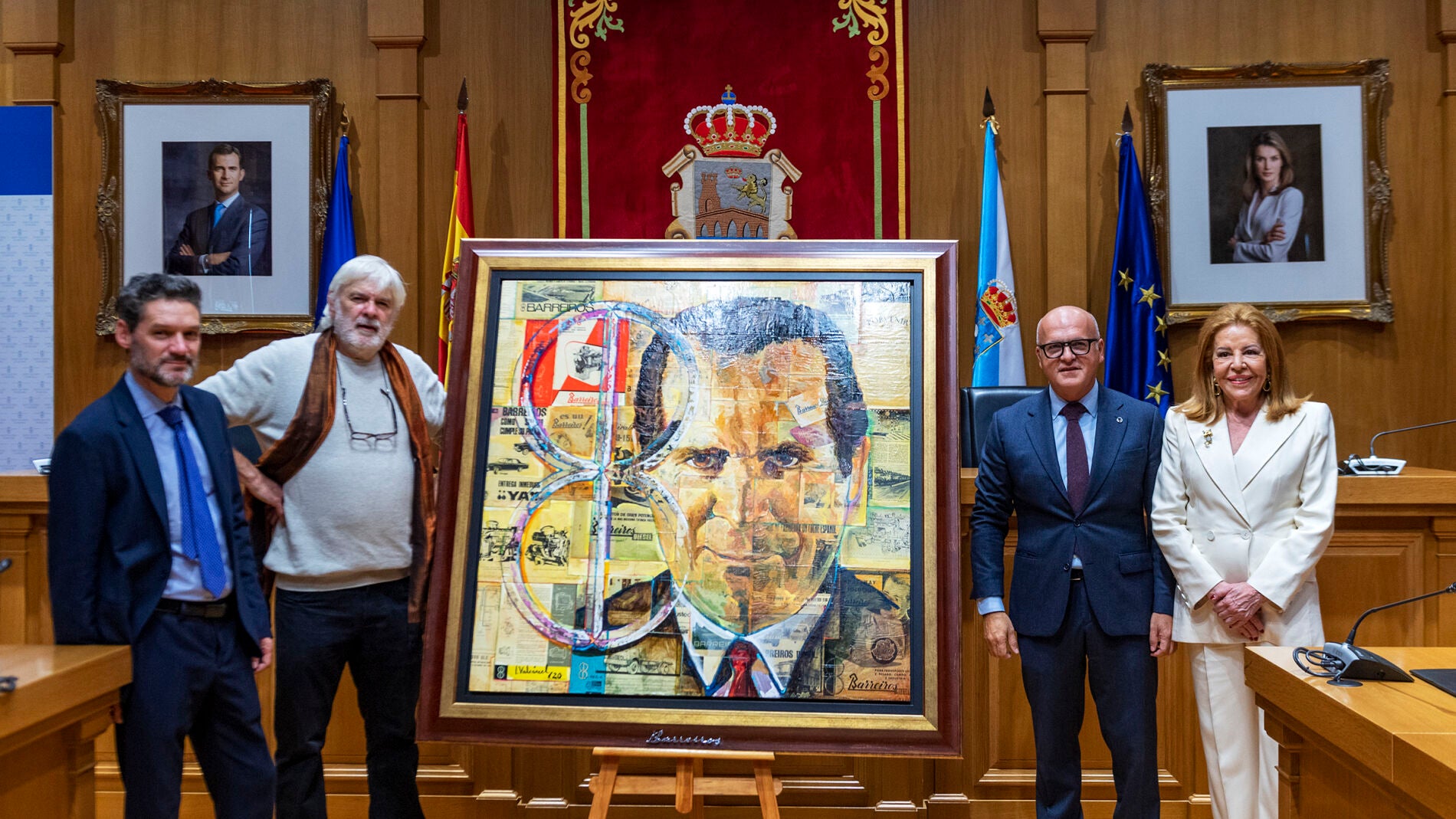 Pola súa parte, Juan Valcárcel explica que “intenté resolver dentro das mis capacidades este encargo da Diputación. Quería plasmar a súa mirada, a dun visionario, acompañado de elementos da súa biografía que creo que o definen. Por iso recopilé documentos orixinais, anuncios… todo o que tuviera que ver con Barreiros. Y sobre ese ‘collage’ realizou o retrato, que espero que poida axudar ás novas xeracións que estudan no Centro de Innovación da FP conozcan este verdadeiro emprendedor e sigan o seu exemplo”.