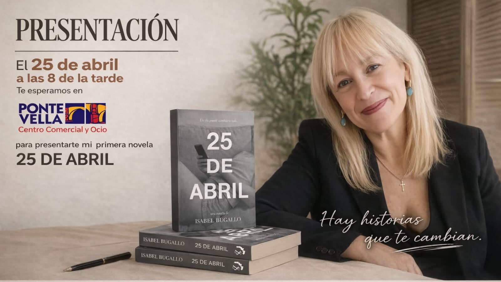 La escritora ourensana Isabel Bugallo presenta su libro "25 de Abril" en Centro Comercial Ponte Vella este sábado (precisamente 25 de abril) a las 20:00 horas.